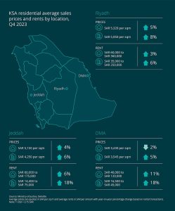 Sales prices and rents continue to grow, with sales rates in Riyadh increasing by 5% and 8% for villas and...