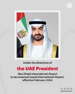 Under the directives of the UAE President Abu Dhabi International Airport to be renamed Zayed International Airport New official name...