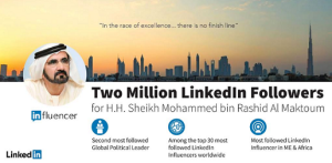 His Highness Sheikh Mohammed bin Rashid Al Maktoum is the second most followed Global Political Leader in LinkedIn Influencer program...