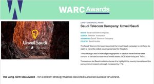 Saudi Telecom Company’s (STC) “Unveil Saudi” campaign by J. Walter Thompson Saudi Arabia has won WARC’s Special, Long-Term Idea award,...
