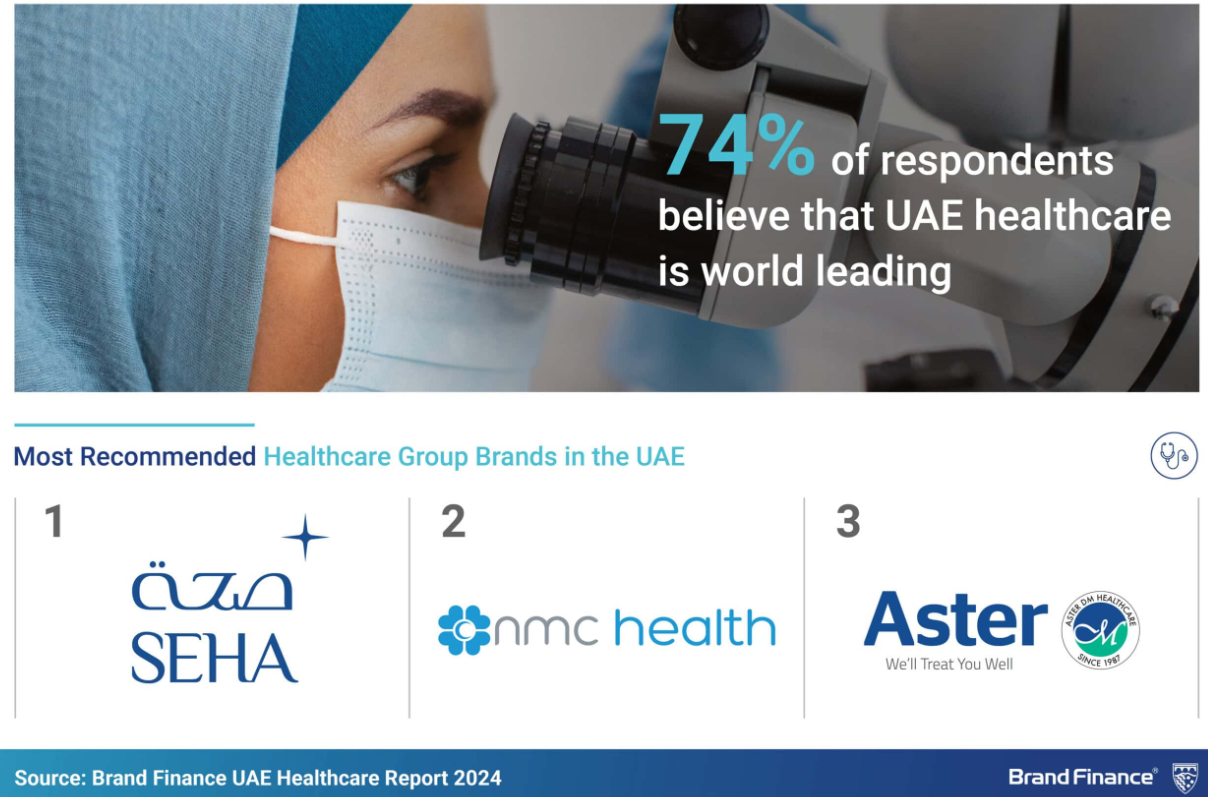 Richard Haigh, Managing Director, Brand Finance commented: “In an era where healthcare access and quality are global priorities for government and citizens alike, the UAE’s investments in its healthcare system are yielding impressive results. Our research reveals that 81% of residents consider the UAE’s healthcare system to be high quality, a testament to the nation’s commitment. However, challenges remain. With an average annual healthcare spend of AED7,600 (USD2,100) per person, 64% of residents still perceive UAE healthcare as expensive. Looking ahead, environmental concerns also loom large, with 68% worried about rising temperatures’ health impacts and 63% concerned about poor air quality. As the UAE continues to refine its healthcare landscape, addressing affordability and environmental health issues will be crucial to maintaining its trajectory of progress.”