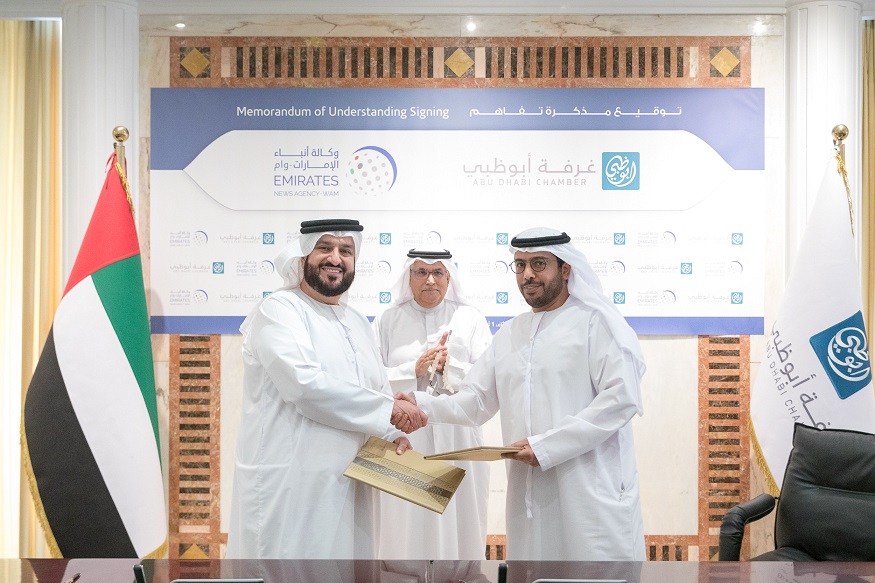 The MoU was signed during an official ceremony, which was held in the presence of His Excellency Abdulla Mohamed Al Mazrui, Chairman of the Federation of UAE Chambers of Commerce and Industry and Chairman of the Abu Dhabi Chamber; Mohammed Jalal Al Rayssi, Director-General of the WAM; His Excellency Ahmed Khalifa Al Qubaisi, CEO of Abu Dhabi Chamber, and a number of officials and heads of departments from both sides.