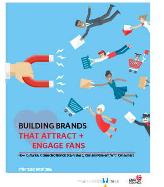 The Chief Marketing Officer (CMO) Council has teamed with Fresh Squeezed Ideas to explore the cultural connection to brand attraction. In a new strategic brief, titled ³Building Brands That Attract and Engage Fans,² the CMO Council taps domain experts and notable brand marketers from PepsiCo, Visa, J&J, PetSmart, Cox Communications, Opus Bank and Overwaitea Food Group to learn more about how culturally connected brands stay valued, real and relevant with consumers.