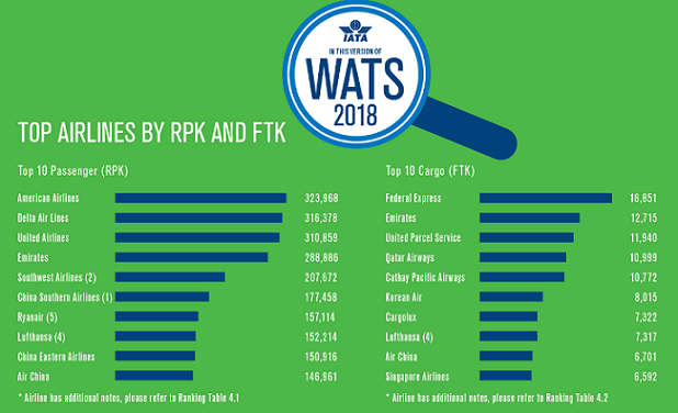 This information is included in the recently released 62nd Edition of the World Air Transport Statistics (WATS), the yearbook of the airline industry’s performance.