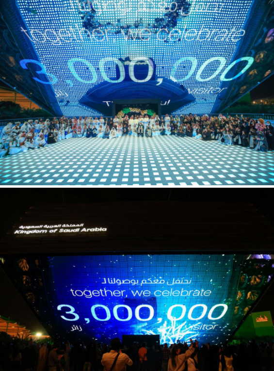 Hussain Hanbazazah, Commissioner General of the Kingdom of Saudi Arabia Pavilion, said: “We are incredibly proud of what the Kingdom of Saudi Arabia Pavilion has realized thus far and reaching three million visits is evidence of all our achievements to date as well as proof that our concept of sharing the real and authentic Saudi Arabia, driven by our limitless ambitions and efforts, is really resonating with visitors.