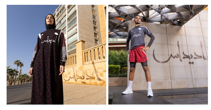 Featuring a range of outfits for both women and men, highlights from the collection include long sleeve cotton dresses with matching hijab, oversized printed tees, tapered pants, hoodies, track tops, oversized hoodies, and coach jackets. A calligraphic interpretation of the adidas logo, designed in Arabic by Qatari calligrapher, Fatima Alsharshani, can also be found on select pieces.