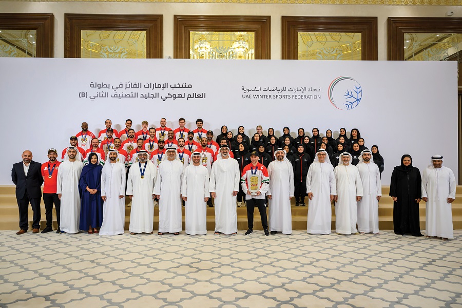 His Highness congratulated the men’s national ice hockey team on their success and highlighted the value that representing the UAE on the world stage brings to the nation. HH commended the performance and technical ability of the athletes that has led them to achieve unprecedented success for the UAE in the sport and is helping to inspire a new generation of national athletes. HH also praised the work of the UAE Winter Sports Federation for its role in creating new opportunities and pathways for sporting talent, in cooperation with the Abu Dhabi Ice Sports Club.