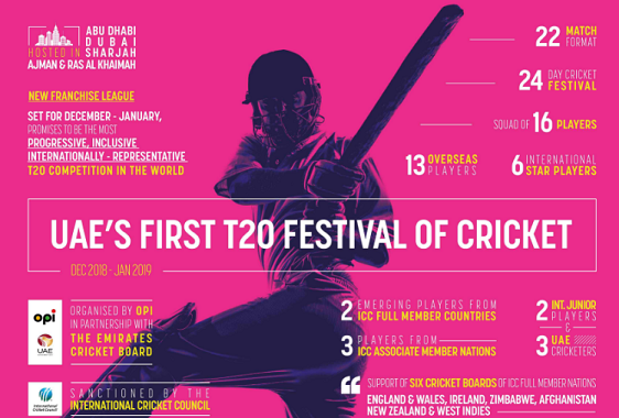 A new elite international T20 cricket league, organised in partnership with the Emirates Cricket Board (ECB) and sanctioned by the International Cricket Council (ICC), is set to take place in the UAE this December 2018 – January 2019.