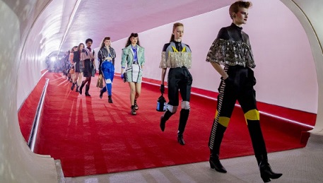 Last month, Louis Vuitton staged their Resort 2020 fashion show in New York’s JFK airport. The catwalk was in the previously abandoned Trans World Airlines terminal which has now been transformed into part of the new luxury hotel complex for TWA Hotel. Tapping into an appropriately air travel aesthetic, the collection was a celebration of New York City featuring the city’s skyline and the Chrysler building across pieces. Focusing on the location and its history, a star-studded audience witnessed the rebirth of JFK as a destination for luxury travel once again.