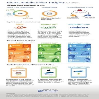 The trend statistics in this report were gathered from Vuclip user surveys predominantly of users from India, Southeast Asia and the Middle East. Users were provided with multiple-choice questions and had the option to opt out. No incentives were provided for responding. The information gathered for the top searches and operating system and device trends comes as a result of our ability to collect anonymous information about what users are searching for, the handsets they are using and the country they’re in. When we aggregate that data, it makes for a compelling snapshot of trends in the mobile world.