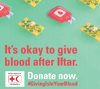 Rana Sidani Cassou, IFRC MENA Head of Communications commented: “Blood saves lives. But a lack of blood can mean the opposite. Across the region, National Red Cross and Red Crescent Societies are part of the advocacy for or the collection of voluntary unpaid blood donations. We hope this campaign will help fill the gap in blood donations that we normally see during Ramadan. We are encouraging people to donate blood after they have broken their fast at sunset. We are also hoping to recruit blood donors who might start donating in Ramadan and maybe continue throughout the year.”
