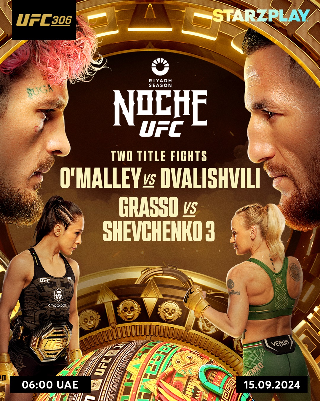 STARZPLAY, the region’s leading subscription video on-demand service, will be exclusively streaming UFC 306: O’Malley vs. Dvalishvili on Sunday, 15 September. Fans across the Middle East and North Africa can tune in live to catch all the action from the highly anticipated showdown between the reigning UFC Bantamweight Champion Sean O’Malley and No. 1 contender Merab Dvalishvili.