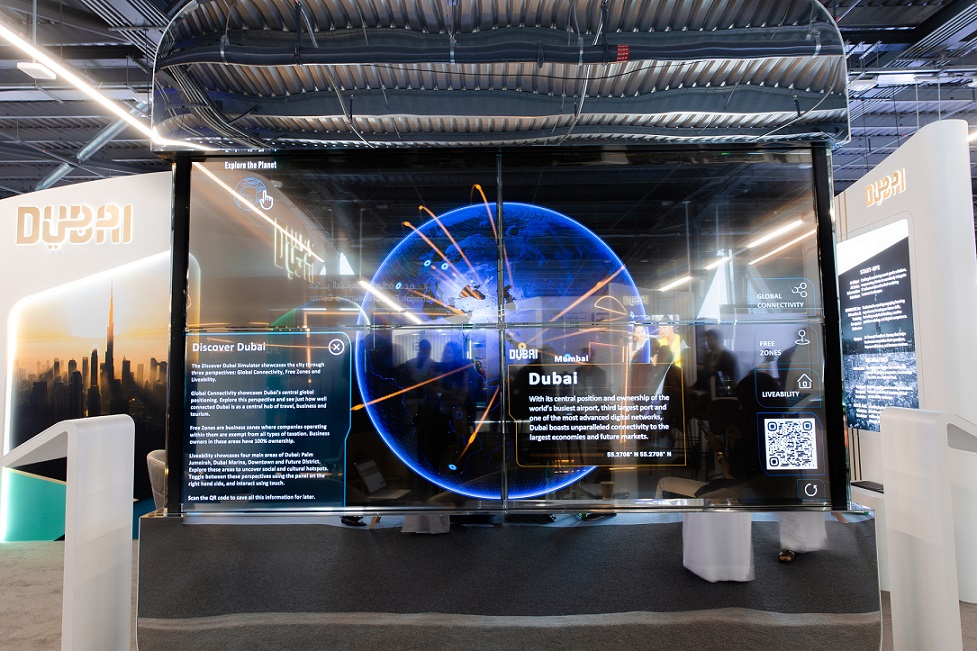 Discover Dubai Simulator – An interactive touchscreen enabling users to learn about Dubai from three different perspectives; global connectivity, liveability and setting up a business. The simulator includes a free zone explorer, which showcases key free zones and sparks conversations and connections leading to new business.