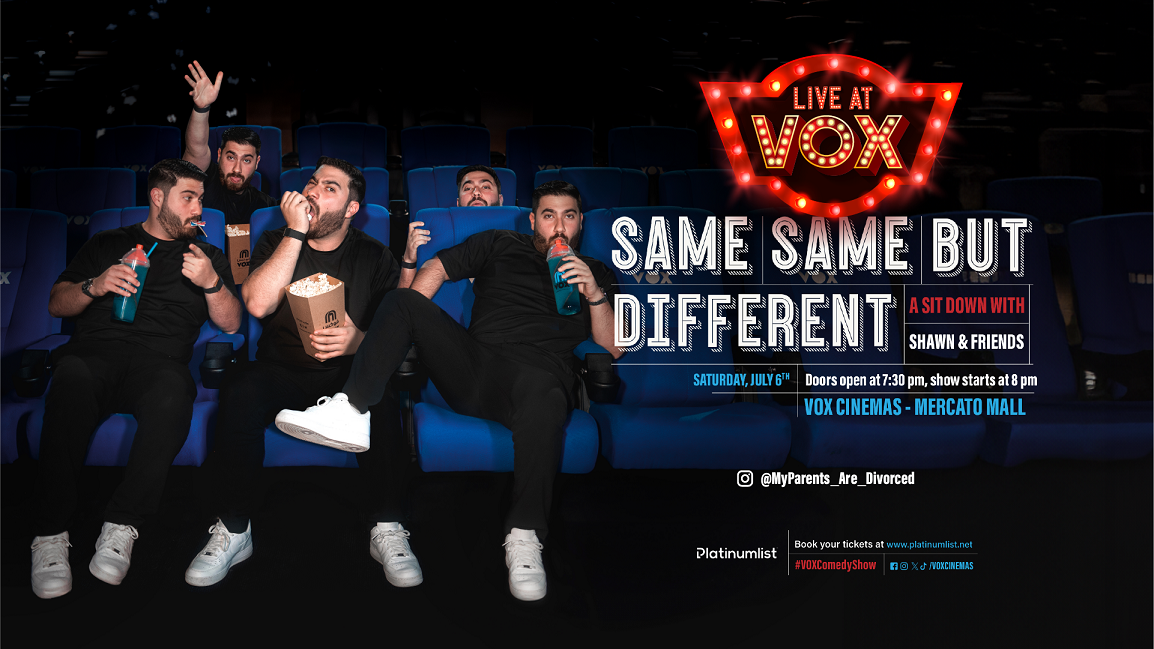Following its sell-out success, VOX Cinemas proudly presents Shawn Chidiac, a.k.a. ‘My Parents Are Divorced’ for the third edition of Same Same, But Different on 06 July.