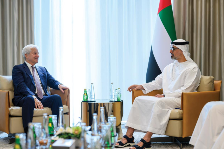 His Highness Sheikh Khaled bin Mohamed bin Zayed Al Nahyan, Crown Prince of Abu Dhabi and Chairman of the Abu Dhabi Executive Council, has met with JP Morgan Chase Chairman and CEO Jamie Dimon in Abu Dhabi.